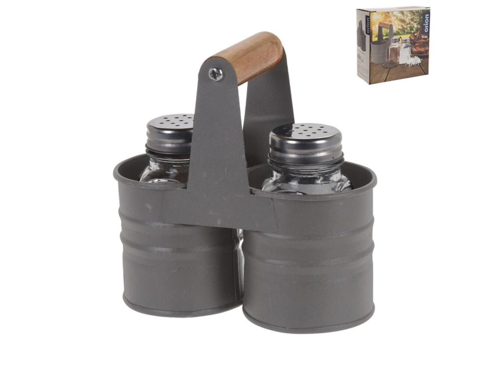 Dochucovací souprava solnička a pepřenka ve stojánku.Budete ji mít při stolování vždy po ruce.