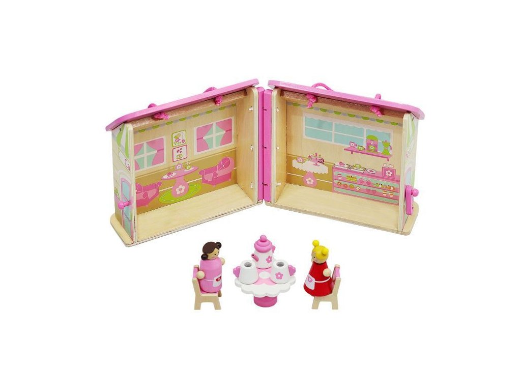 Domeček pro domácí mazlíčky v kufru, figurky Tento exkluzivní domeček ve tvaru kufru s nábytkem je okouzlující hračka pro děti od 3 let. Ve složeném stavu zabírá domeček ve tvaru kufru minimum místa a po otevření může být jedinečnou dekorací pokoje . Víko kufru se stává součástí domečku pro panenky, který lze ozdobit dřevěným nábytkem. Domeček si můžete zařídit jako běžný byt nebo ho proměnit v obchod či hotel pro domácí mazlíčky .Obsahsady: