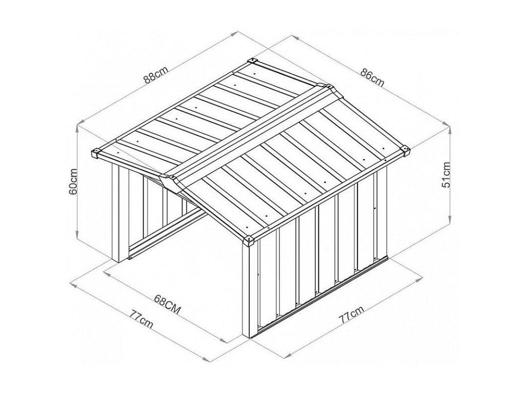Je vyroben z vysoce kvalitního kovu, který je o 20% hrubší než u běžných zahradních domků a zároveň je odolný vůči korozi.