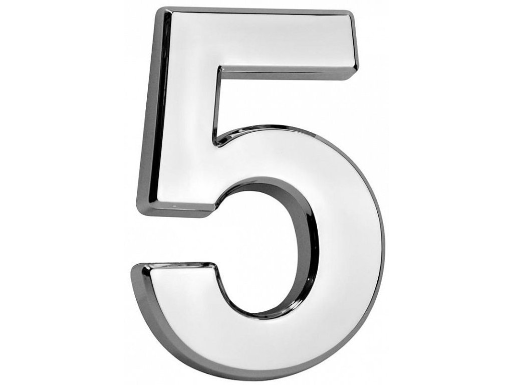 Domovní číslo "5" MagicHome, s lepící páskou, stříbrné, 70x100 mm, ABS