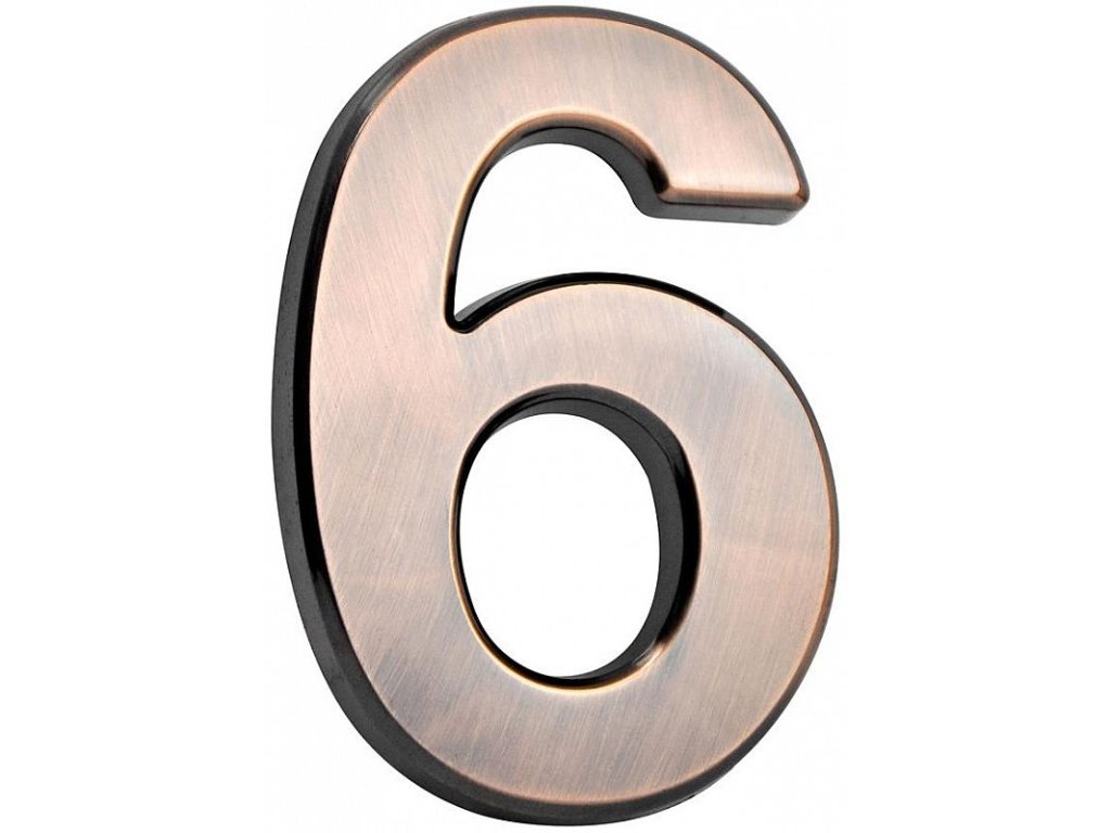 Domovní číslo "6" MagicHome, s lepící páskou, bronzové, 70x100 mm, ABS