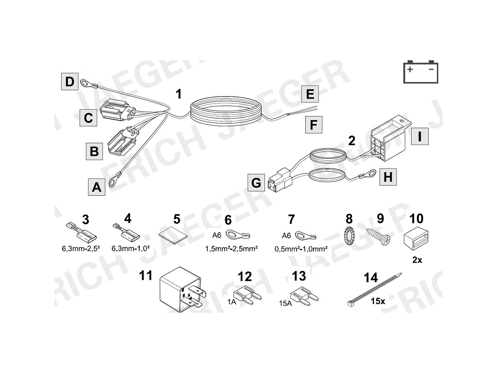 Doplňková sada pro spínané plus (+15) pro 13-ti pinové elektroinstalaceSpínané plus pro 13-ti pinové elektroinstalace (kontakt číslo 10 ze zásuvky). Použití podle zadání číselného kódu v katalogu.