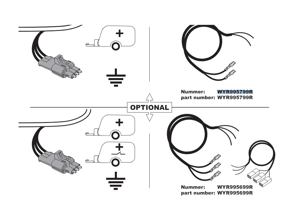Doplňková sada trvalé (+30) a spínané plus (+15) pro 13-ti pinové elektroinstalaceSada rozšiřující 13pin elektropřípojky o trvalé a spínané plus (kontakty čísel 9 a 10 ze zásuvky), vhodná k provozu s karavany.
