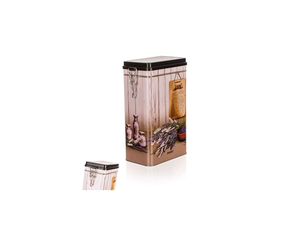 Plechovka LAVENDER s plastovým víkem a patentním kovovým uzávěrem s dekorem Levandule lze využít na čaj, kávu, čokoládu, kakao atd.Rozměry 11.7 x 7.1 x 19.8 mm, síla stěny 0.21 mm.