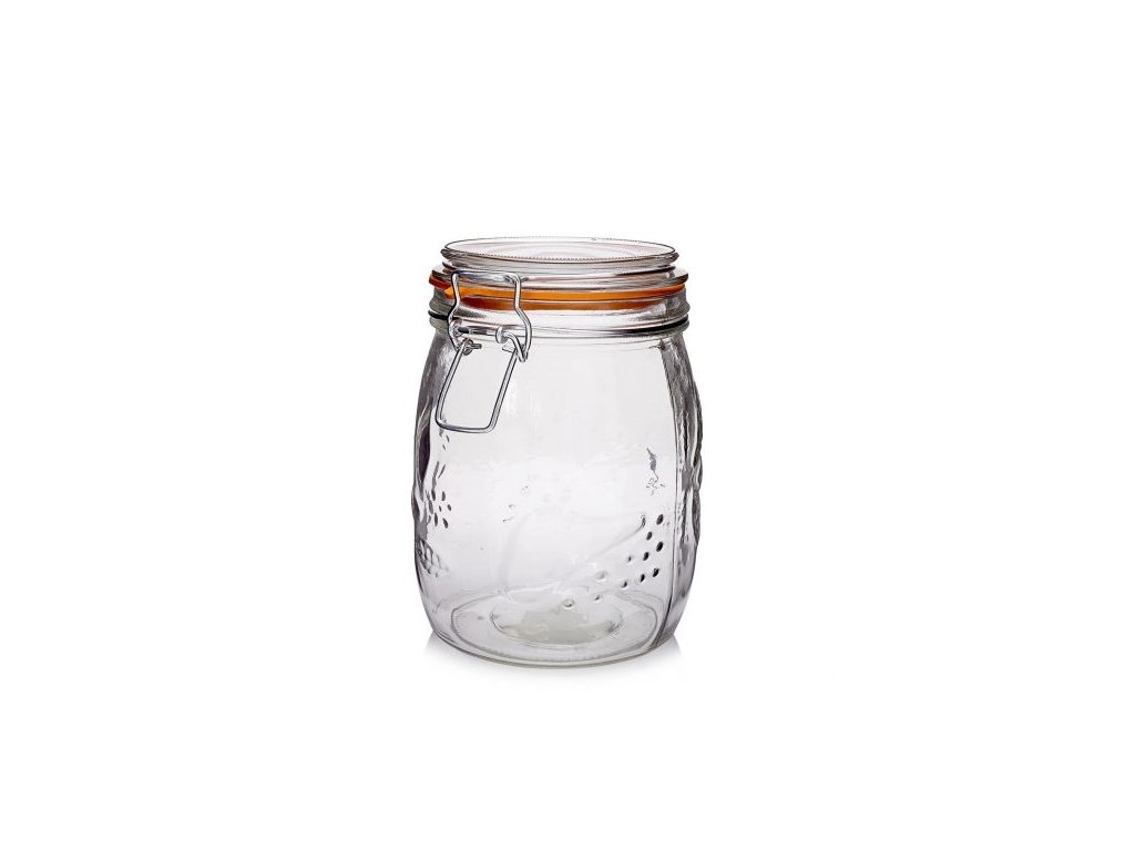 Kvalitní skleněná dóza s patentním uzávěrem a těsněním.Nedoporučujeme ve sklenici zavařovat.