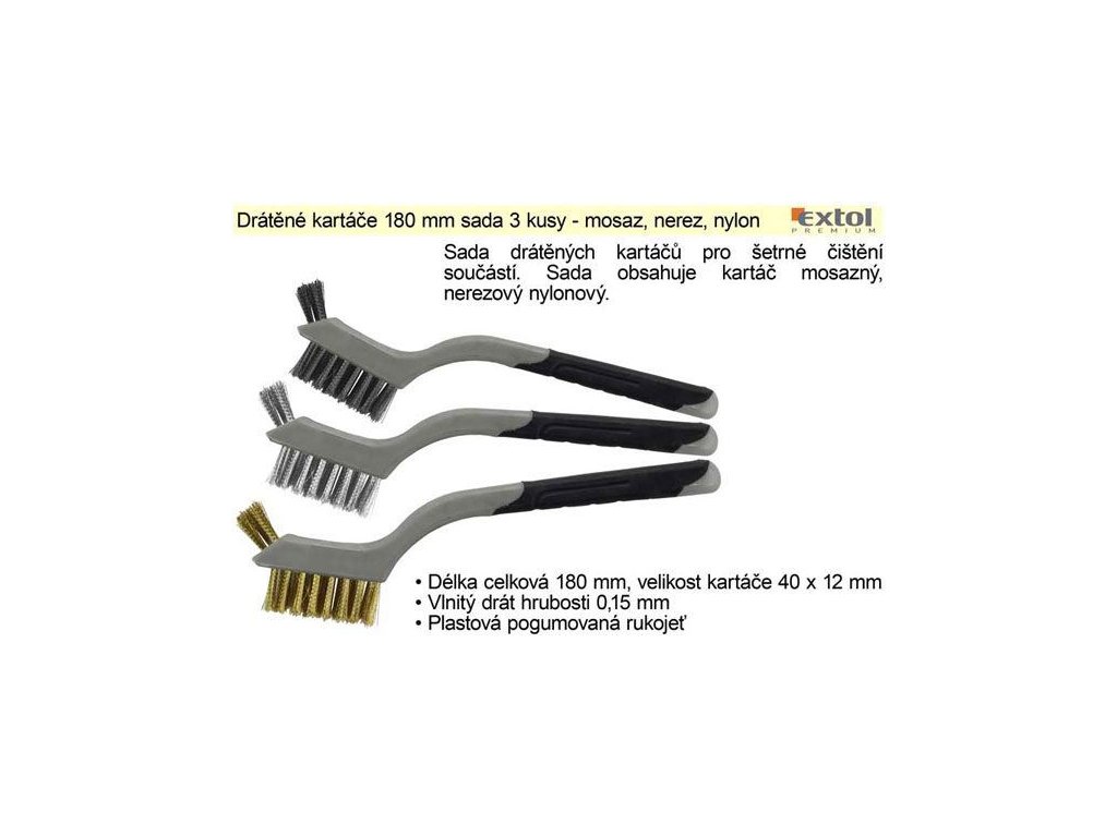 Drátěné kartáče Extol Premium-sada 3ks délka 180mm, mosazný, nerezový a nylonový kartáč pro jemné čištěníDoplňkové parametry