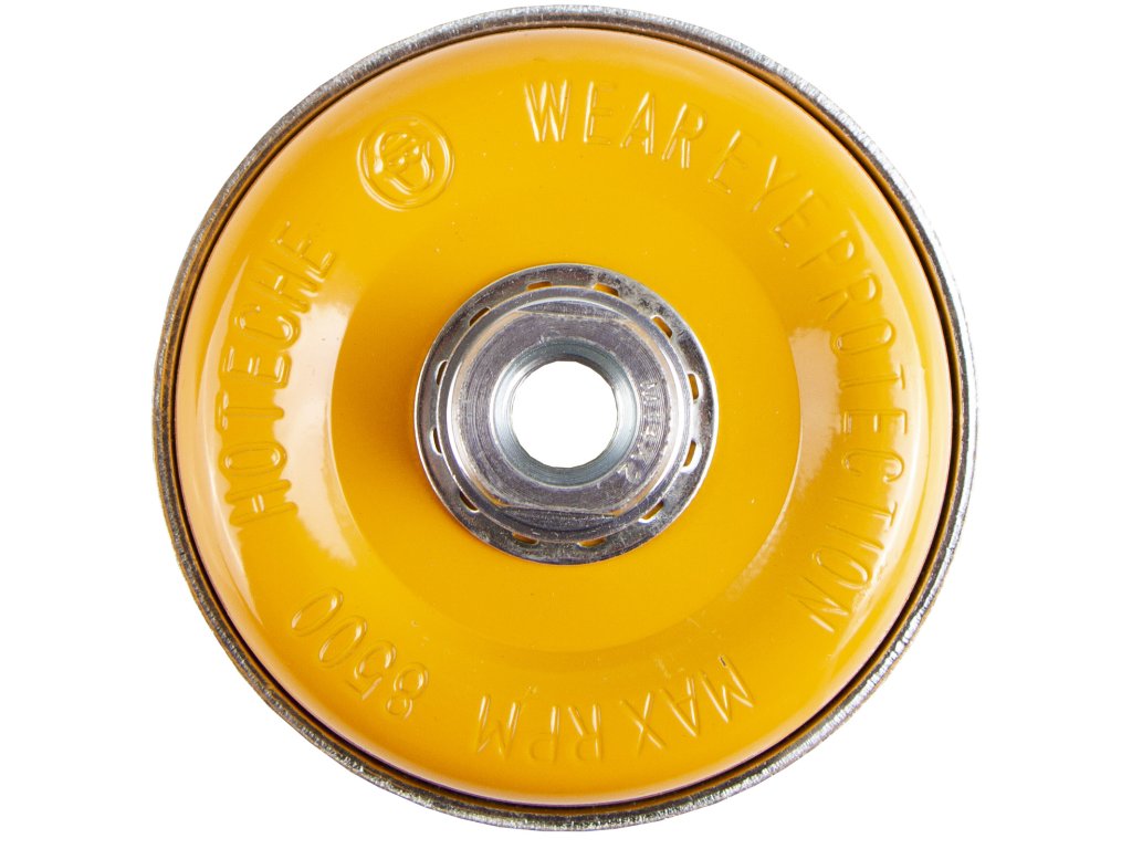 Drátěný čelní kartáč o průměru 100 mm pro odstraňování rzi, barev a laků z kovových předmětů.
