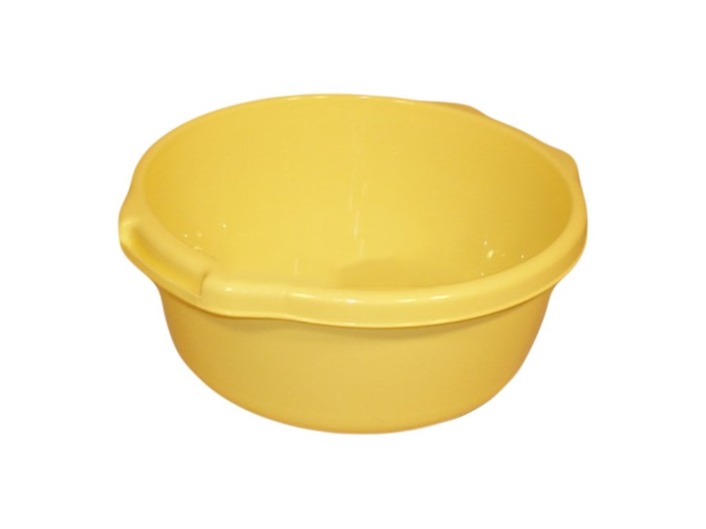 Pevný plastový dřez s uchy.Objem 16 litrů, průměr 39 cm a výška 18 cm.