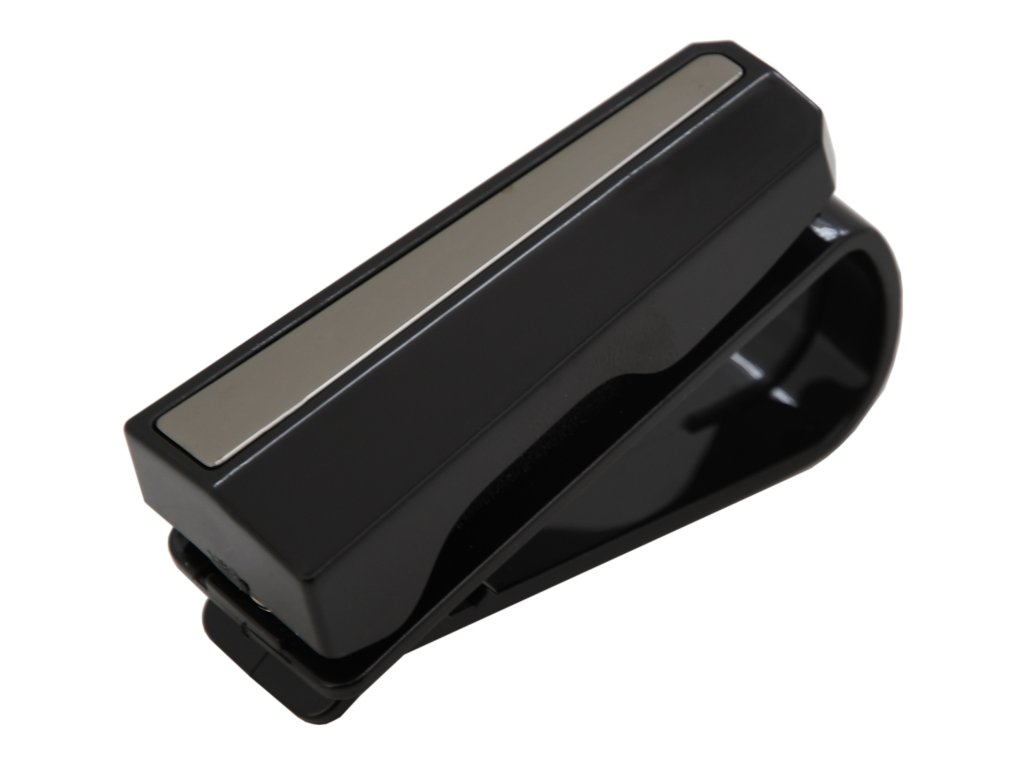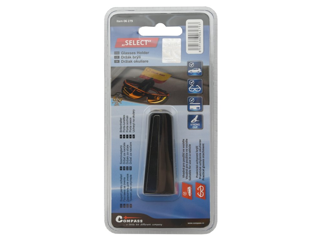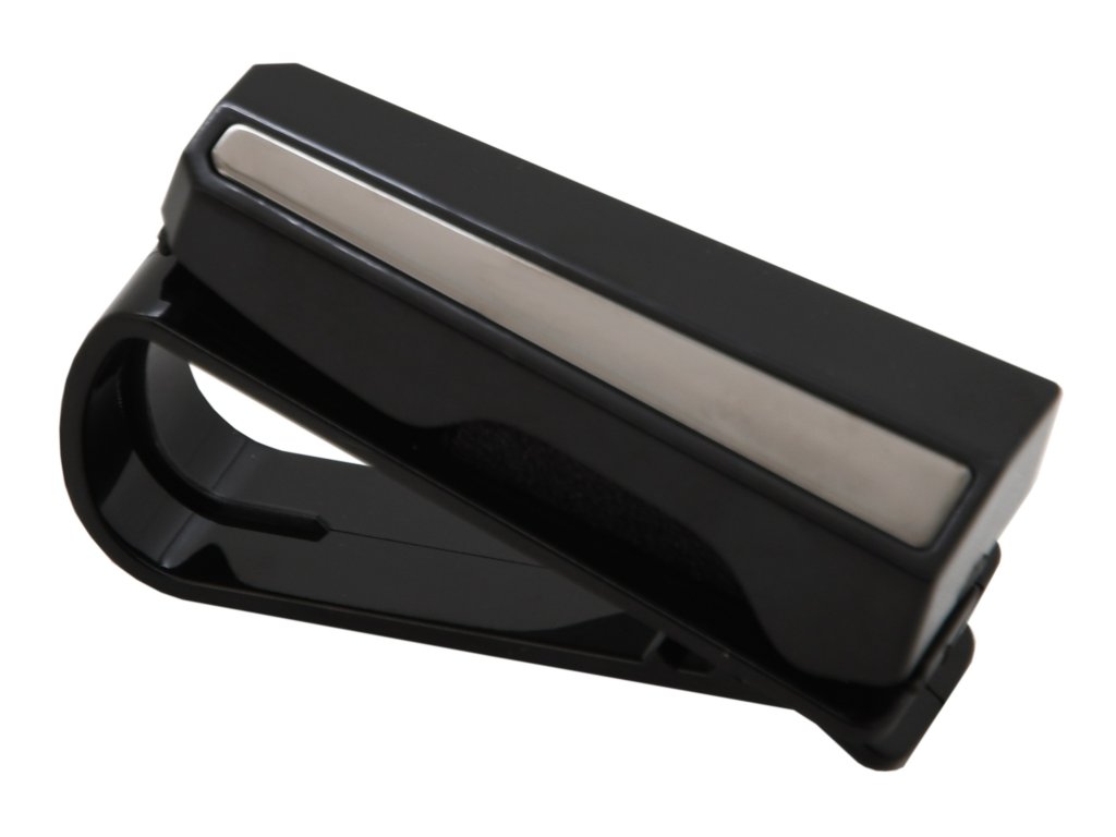 Umístění držáku na sluneční clonu, či jiný záhyb v interiéru vozu (max. šířka 2 cm) je snadný a bezpečný způsob pro umístění brýlí na dosah ruky. Držák je navíc uzpůsoben i pro držení karet (např. slevové karty Vaší oblíbené čerpací stanice).