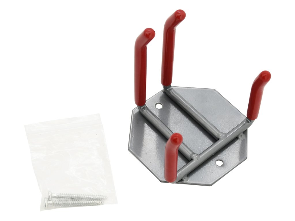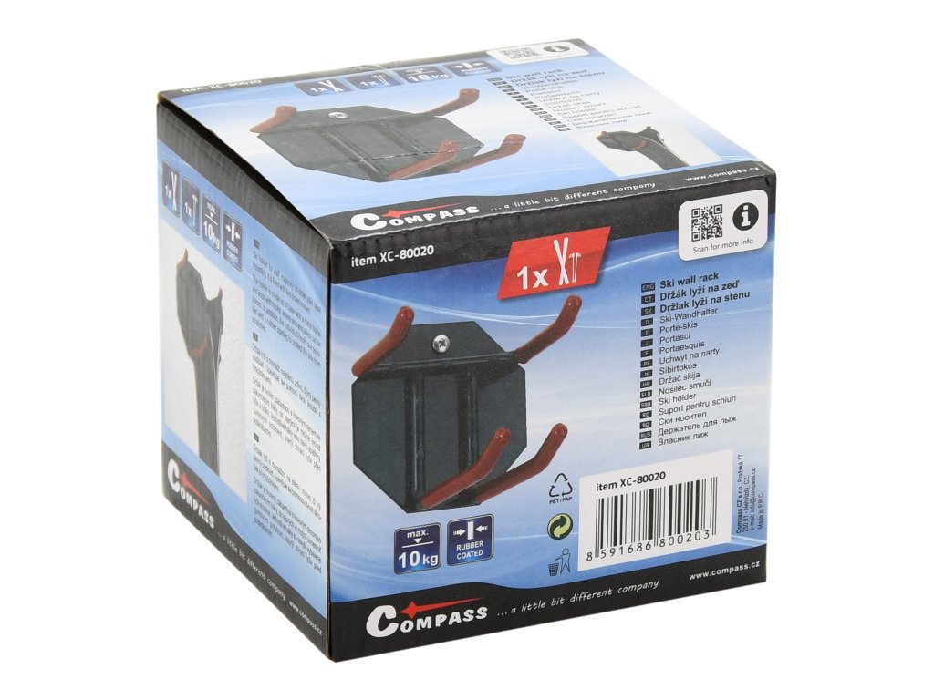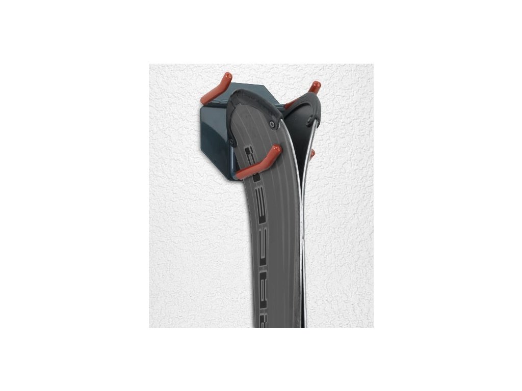 Držák je celokovový a je tvořen pevnou základnou a sestavou háků, pro uskladnění páru lyží a hůlek. Háky jsou navíc opatřeny gumou, která zabraňuje poničení a zároveň funguje jako protiskluzná vrstva.