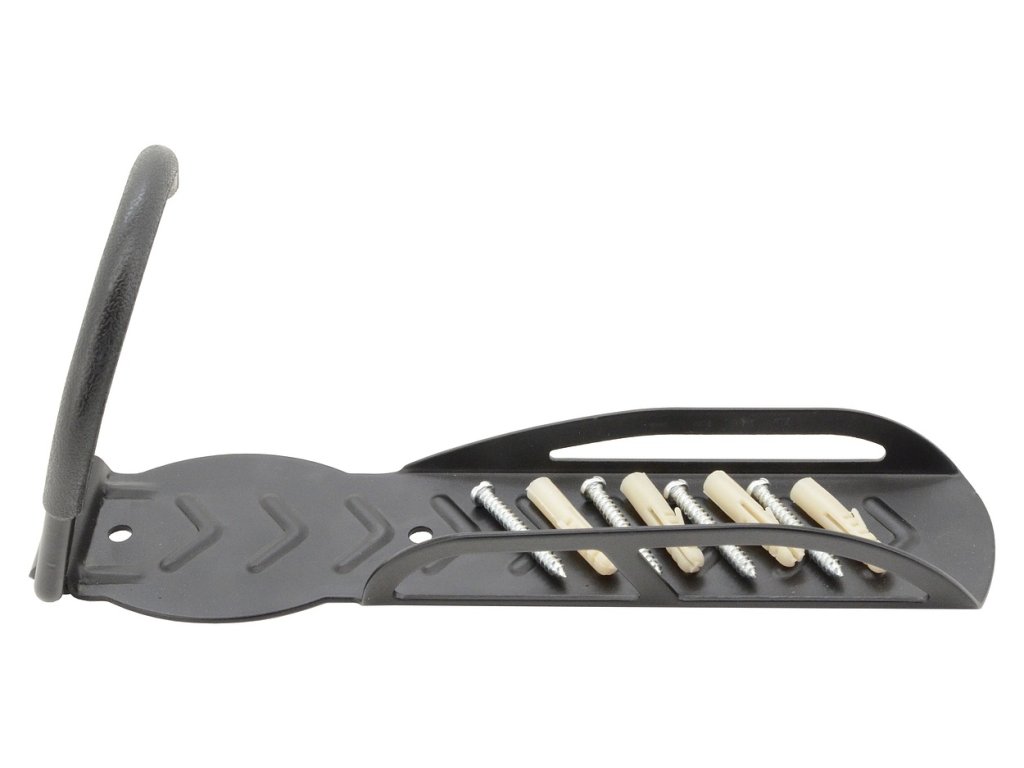 Držák je vybaven hákem pro zavěšení předního kola a vodící deskou, díky které kolo neznečistí zeď a zároveň zabraňuje výraznému naklánění kola do stran.