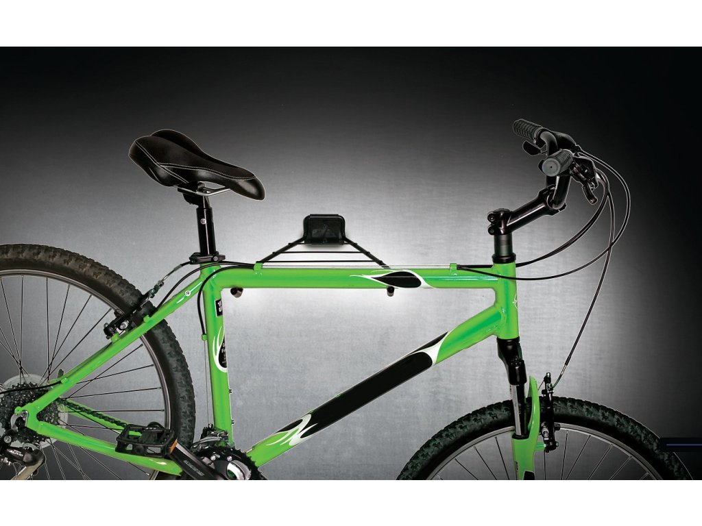 Kovový držák je tvořen sklápěcím zdvojeným ramenem a mřížkou. Konce držáku jsou pogumované pro bezpečné ucycení rámu bicyklu a na mřížku je možné odložit dodatečné příslušenství jako je helma, brašna atp..
