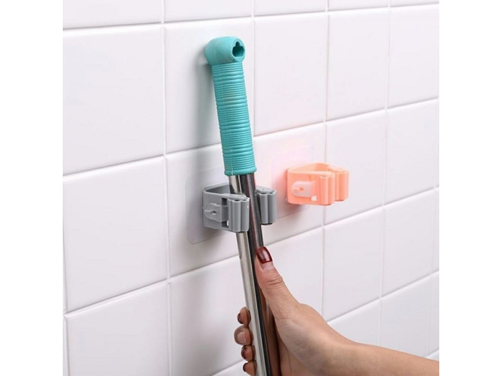 Plně univerzální nástěnný držák, který jistě najde uplatnění v každé domácnosti, dílně, garáži nebo kanceláři. Převezměte kontrolu nad nepořádkem a neustále volně položenými mopy a kartáči. Jednoduchá a pohodlná instalace - věšák je samolepící.