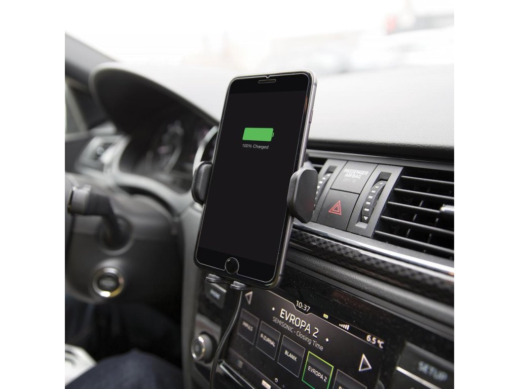 Automatické čelisti se po připojení k napájení samy rozevřou a po vložení telefonu se přizpůsobí jeho velikosti. Dotyková boční tlačítka umožňují snadnou manipulaci jednou rukou, což značně zvyšuje bezpečnost při řízení.