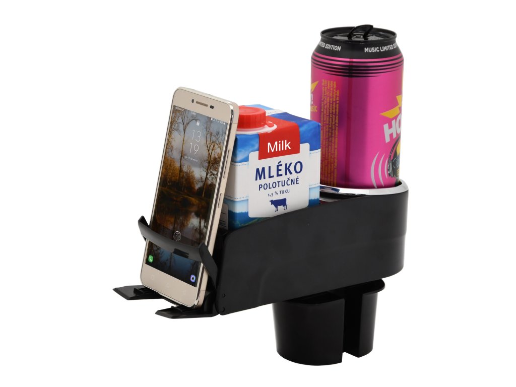 Univerzální držák pro telefon a nápoje dvojitý SELECT pro upevnění do držáku nápojů středové konzole interiéru vozu.