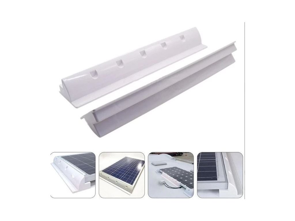 Držák pro fotovoltaický panel 680mm sada 2ks, bílý Plastové držáky pro uchycení solárních panelů. Pro panely s hliníkovým rámem, vhodné na střechy karavanů, obytných vozů, lodí apod.Materiál: ABS plast