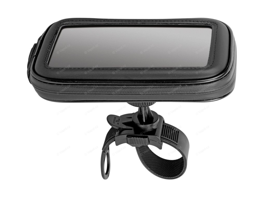 Multifunkční držák držák telefonu, PDA, navigace. Rychlé upevnění pomocí speciální objímky se zámky, vhodné na řídítka průměru 20 - 48mm. Vodotěsný, vhodný pro chytré telefony a navigační systémy. Průsvitná svrchní část, opatřeno voděodolným zipem a otvorem pro nabíjení.Rozměr 10,5x17,5x3,5 cm.
