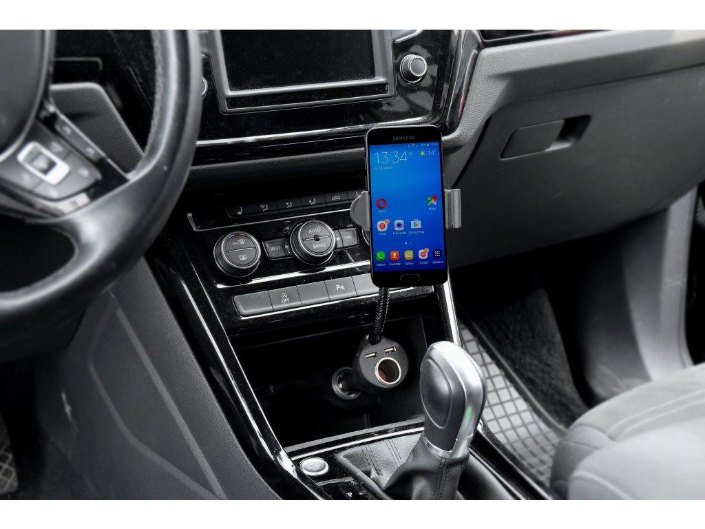 Přeztože se držák umisťuje do zásuvky zapalovače 12/24V, zásuvka zůstane díky důmyslné konstrukci zachována a navíc přibude 2x USB konektor 2 A.
