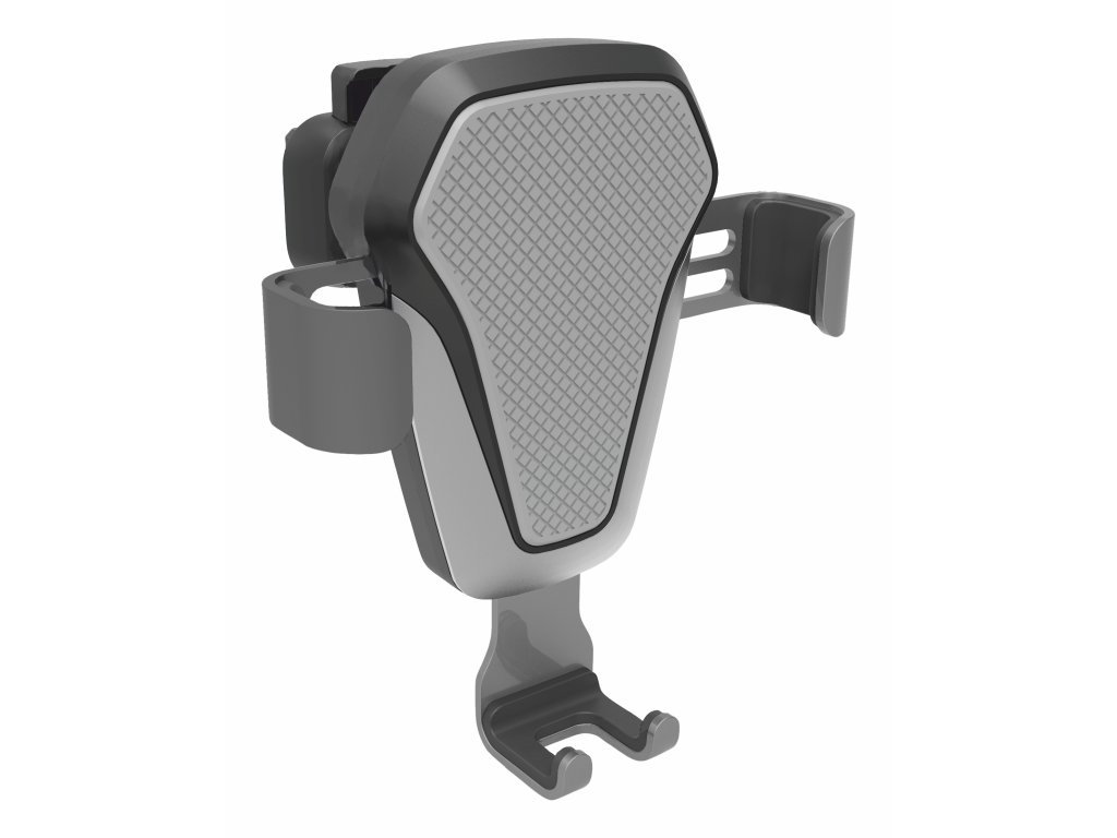 Držák je opatřen gravitačním systémem uchycení telefonu, kdy telefon svojí vahou působí na spodní rameno držáku, díky čemuž se stáhnou boční ramena, která telefon upevní.