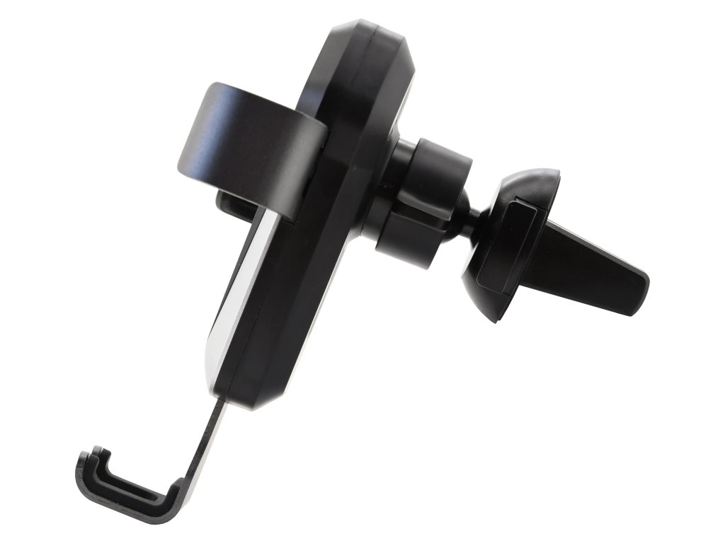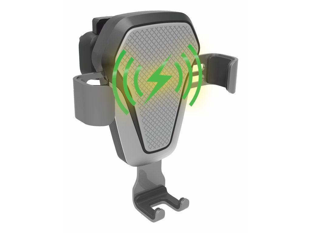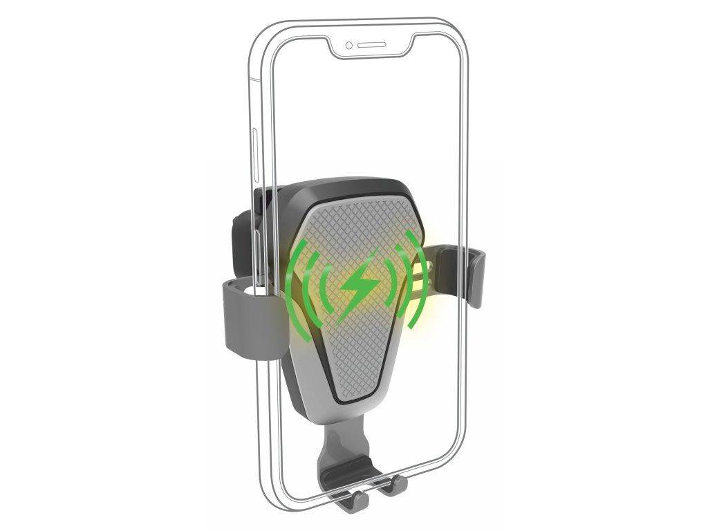 Univerzální držák telefonu řady LUKE pro upevnění do mřížky ventilace s možností automatického bezdrátového dobíjení telefonu standardu Qi a umístěním telefonu jednou rukou.