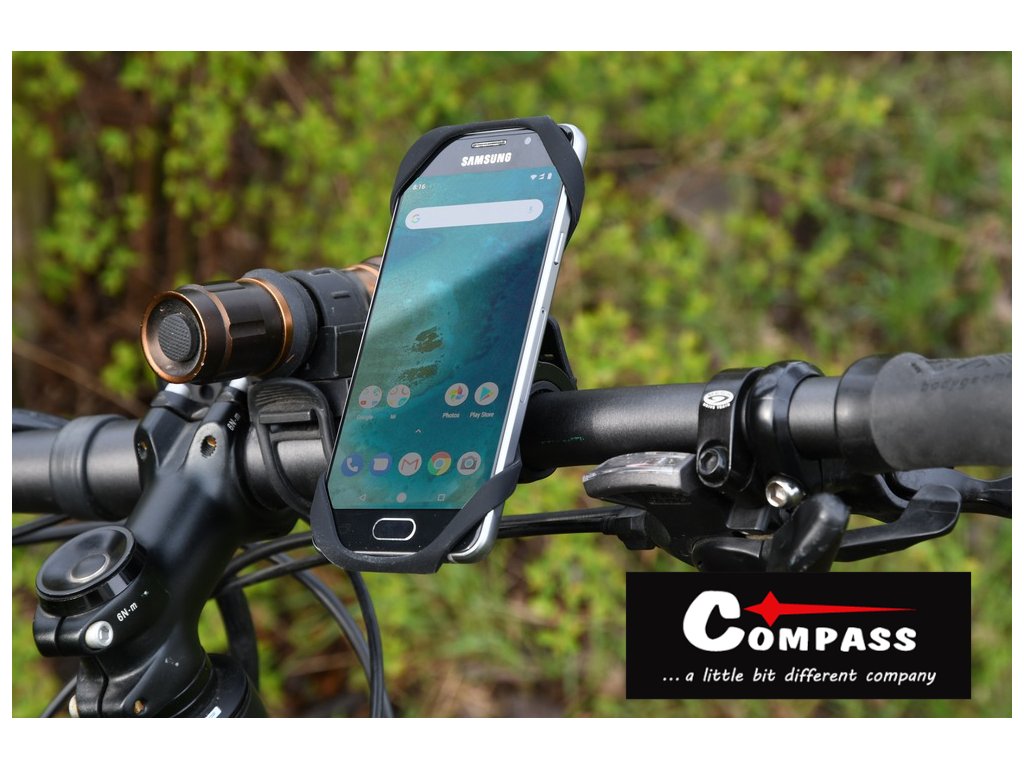 Držák je vhodný pro uchycení telefonů s úhlopříčkou displeje až 7". Je vhodný pro upevnění na standartní trubku řidítek jízdního kola pomocí pevné gumové přesky se 7x vylisovanými polohami k bezpečnému zajištění.