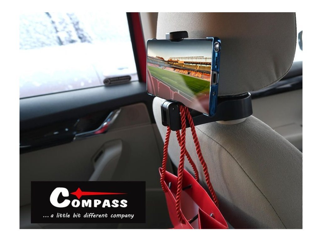 Otočný mechanismus – držák nabízí možnost otáčení okolo osy tyčky hlavové opěrky, což umožňuje snadné nastavení polohy telefonu podle potřeby. Sledování obrazovky z jakéhokoliv úhlu bez námahy.