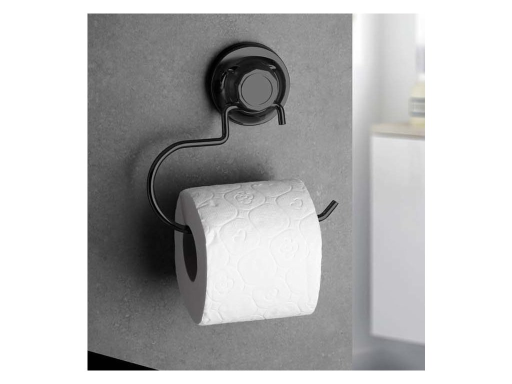 Elegantní kovový černý držák toaletního papíru.Rozměry 7.5 x 16 cm.