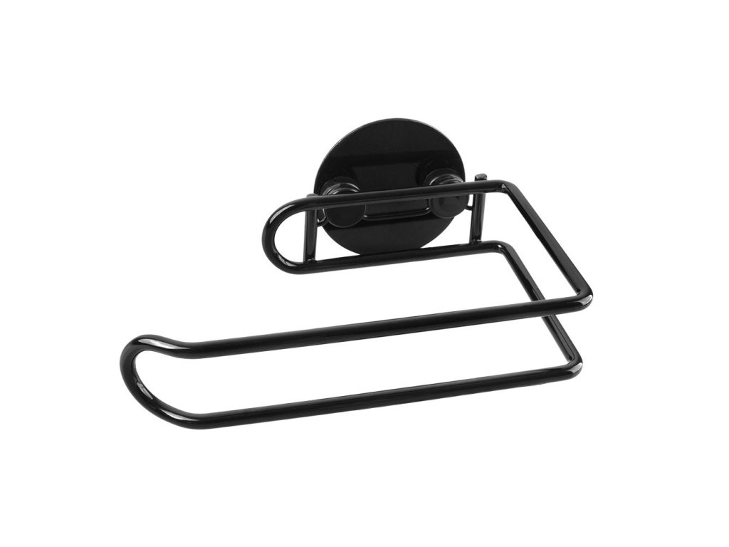 Kvalitní černě lakovaný držák toaletního papíru určený k montáži na stěnu pomocí samolepek 3M.Rozměry celkem 14.7 x 10 x 6 cm, nosnost až 4 kg.