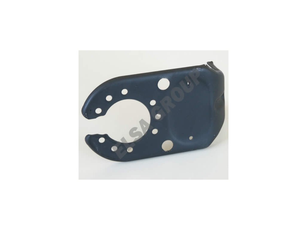 Plechový držák s prostorem na typový štítek a dvěma otvory pro připevnění pod šroub kulového čepu.