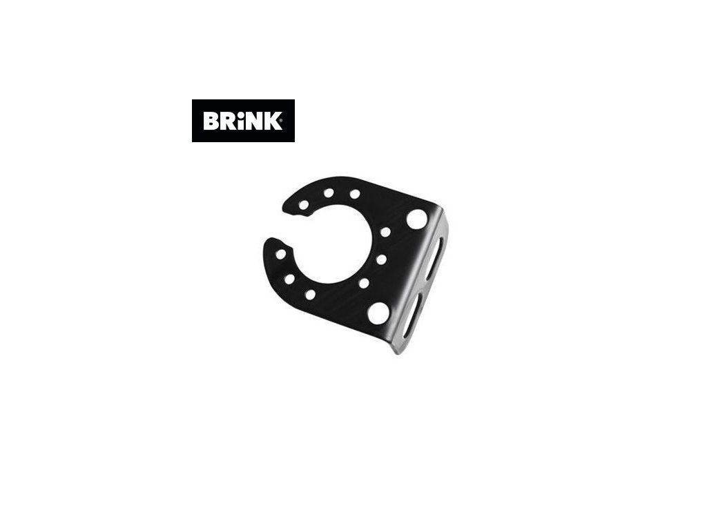 Plechový držák se dvěma otvory pro připevnění pod šroub kulového čepu. Výrobce: BRINK Towing (Thule), Nizozemsko