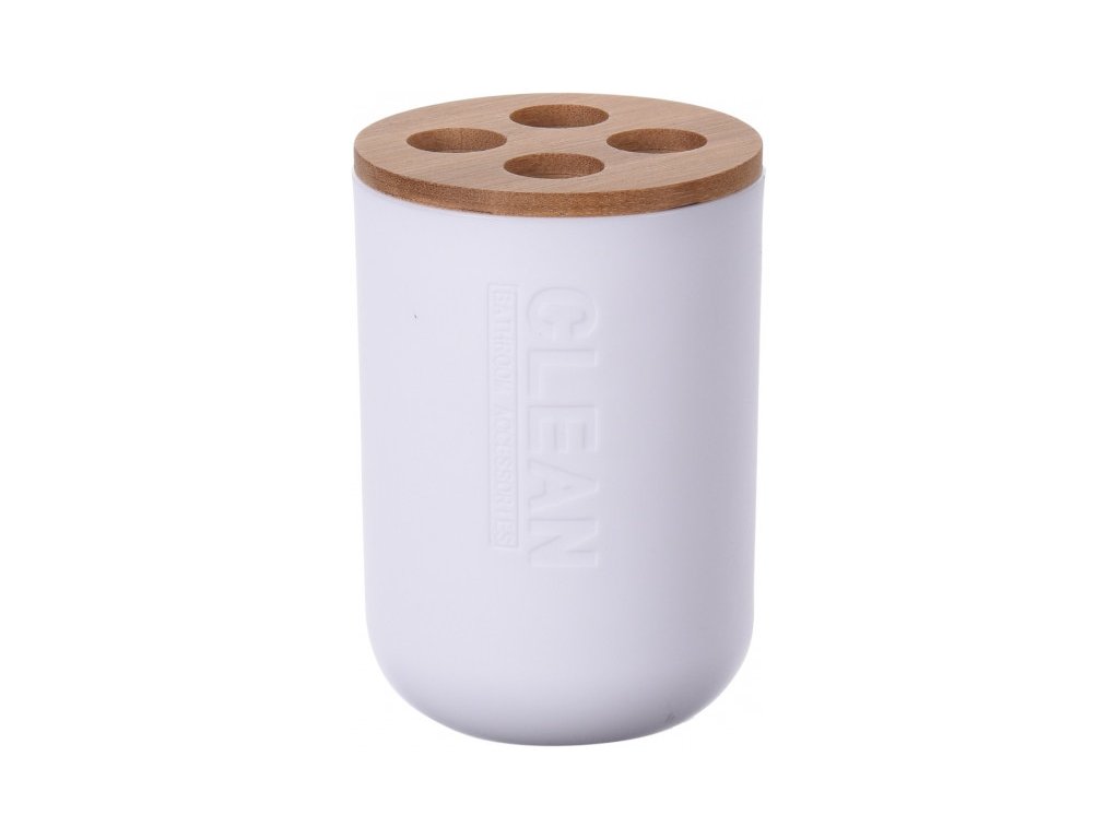 - držák na zubní kartáčky v kombinaci provedení plastu a bambusového dřeva- objem 330 ml, průměr 7 cm a výška 11 cm