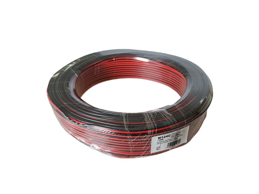 Dvojlinka 2x0,5mm2 CCA, 20AWG červeno-černá, balení 100m