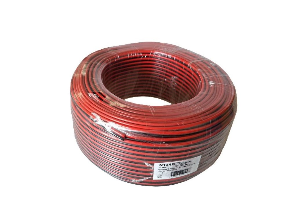 Dvojlinka 2x1mm2 CCA, 17AWG červeno-černá, balení 100m **Poměděný hliník**Doplňkové parametry