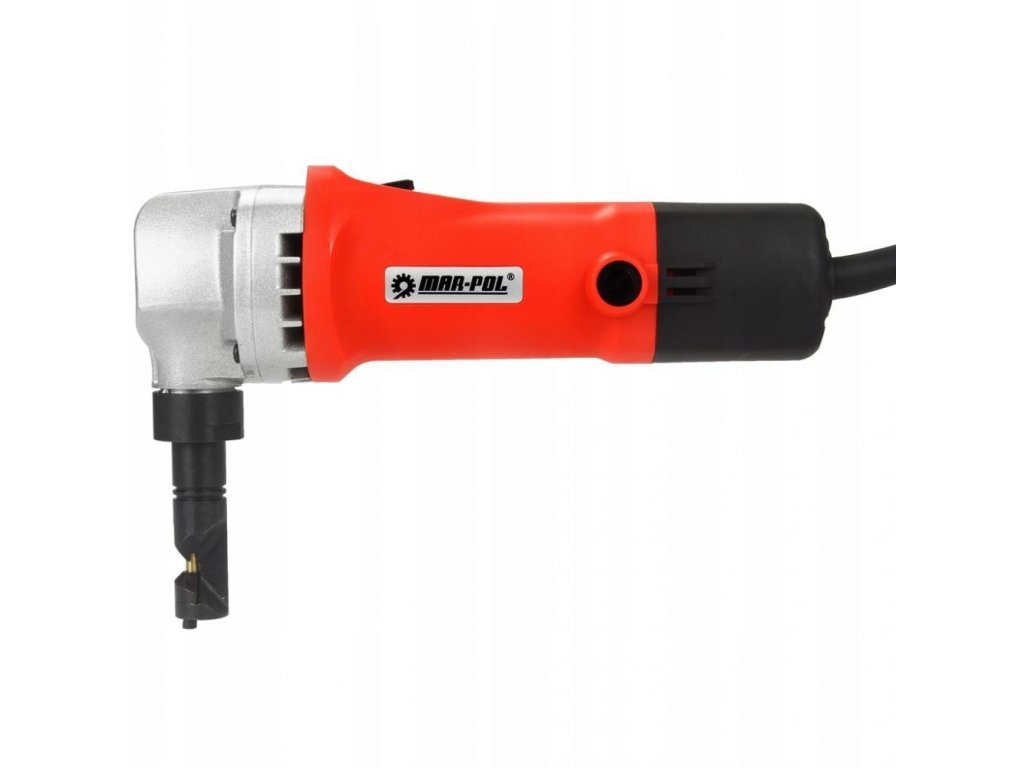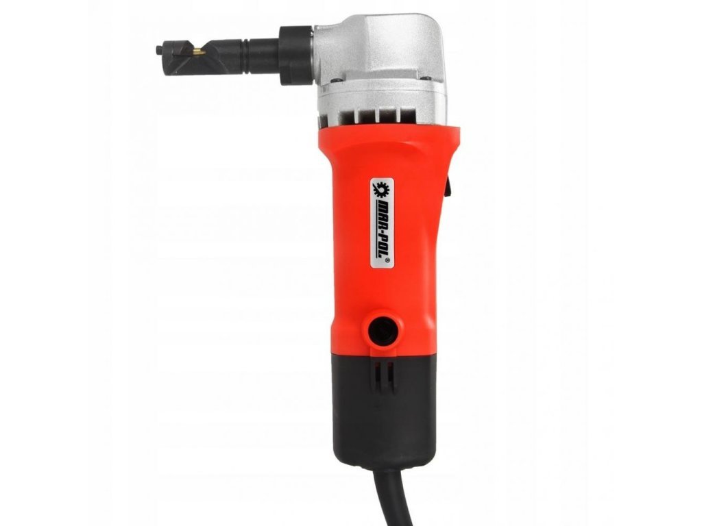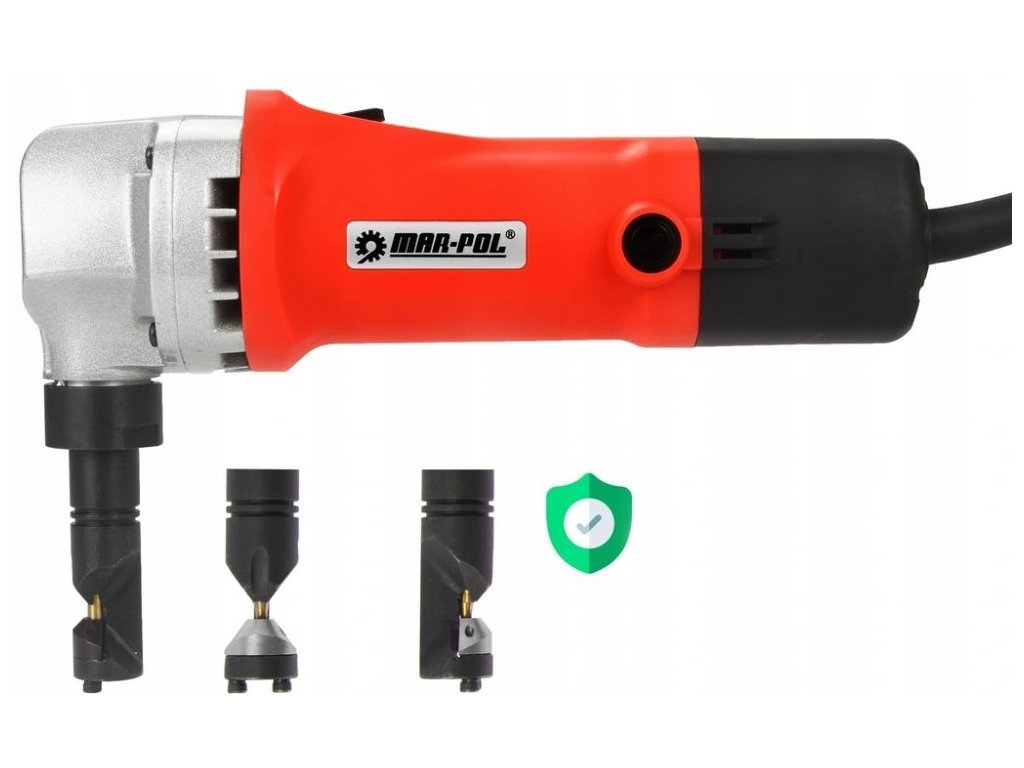 Elektrické nůžky na plech jsou zařízením nezbytným pro práce související se stavbou, kutilstvím a v autoservisech. Nůžky se používají pro práce související s přímými, trapézovými, vlnitými a kovovými střešními krytinami. Tak široká škála možností při výběru řezaného materiálu se promítá do velkého množství práce, kterou lze provést s tímto zařízením. Nůžky snadno stříhají plechy v přímé linii, stejně jako v zakřivené čáře, oblouku podle určené šablony. Zařízení je poháněno 500 W elektromotorem, díky kterému je práce se zařízením plynulá a přesná. Vzhledem ke svému vysokému výkonu si zařízení poradí se silným materiálem.