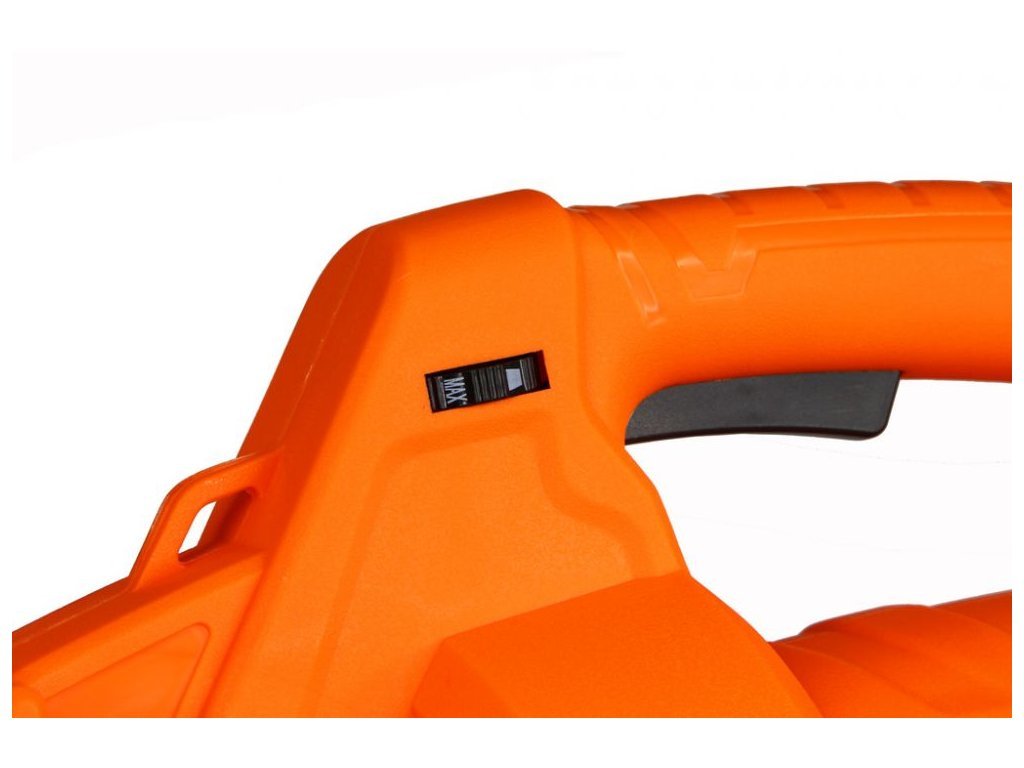 Elektrický foukač má příkon 3000 W a rychlost foukaného vzduchu až 275 km/h, což umožňuje efektivní odstranění listí, trávy, sněhu a dalších nečistot. Zařízení nabízí nastavitelnou regulaci otáček v rozsahu 8000 – 14000 ot./min., což umožňuje přizpůsobení výkonu podle aktuálních potřeb – od jemného úklidu po trávníku až po intenzivní úklid sněhu.