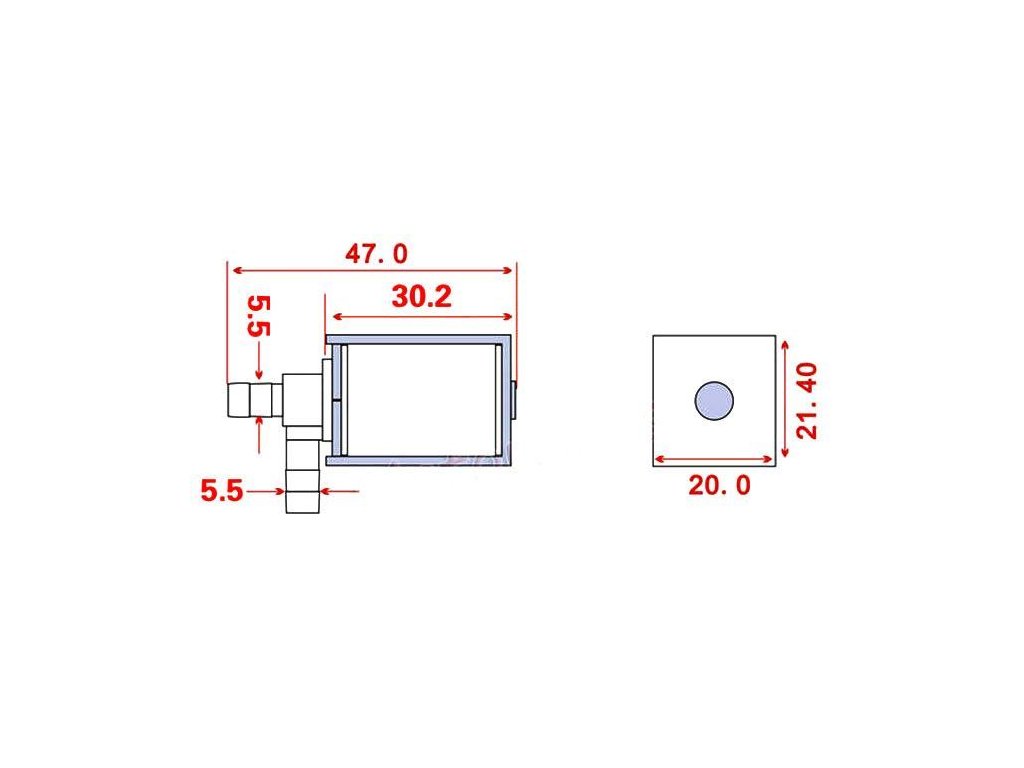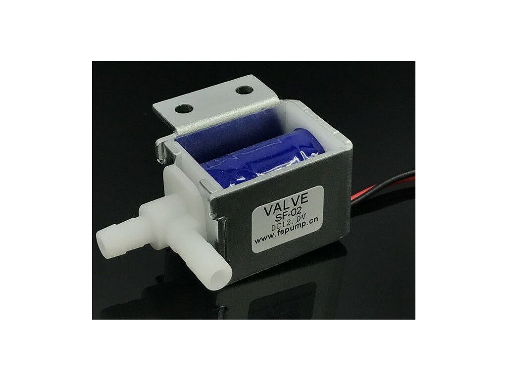 Elektromagnetický ventil 12V na vodu plastový, vývody 5,5mm **Specifikace:**Napájecí napětí: 12V