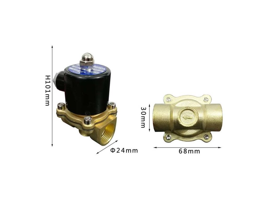Elektromagnetický ventil 2W-200-20, 24VDC, mosazný, příruby G3/4”, NC Mosazný ventil na vodu nebo vzduch s přírubami 3/4” pracující i při nulovém tlaku protékající kapaliny.**Specifikace:**
