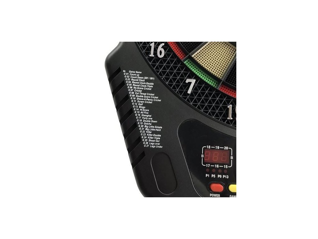 Elektronický terč na šipky s příslušenstvím 43 x 51,5 cm Trizand Hra s elektronickými šipkami je skvělá arkádová zábava pro začátečníky i pokročilé hráče. Rozvíjí nejen koncentraci, ale i manuální zručnost a všeobecnou zručnost. Profesionální šipkový set - elektronický terč umožňuje báječnou hru na terče o průměru 34,5 cm. Díky tomu můžete trávit spoustu času společně s rodinou nebo přáteli. Soutěžení v režimu individuálních her nebo společné budování úspěchu vrežimu týmových her je k dispozici až ve 27 typech her. Možnost dodatečné konfigurace znamená, že elektronický terč má až 243 herních režimů, takže si hru můžete užívat po dlouhou dobu a objevovat nové možnosti, které poskytuje. Hra má vestavěný reproduktor, který vydává zvuky zpráv o aktuálním stavu hry. Software umožňuje 16 lidem hrát současně v individuálních nebo týmových hrách.SPECIFIKACE: