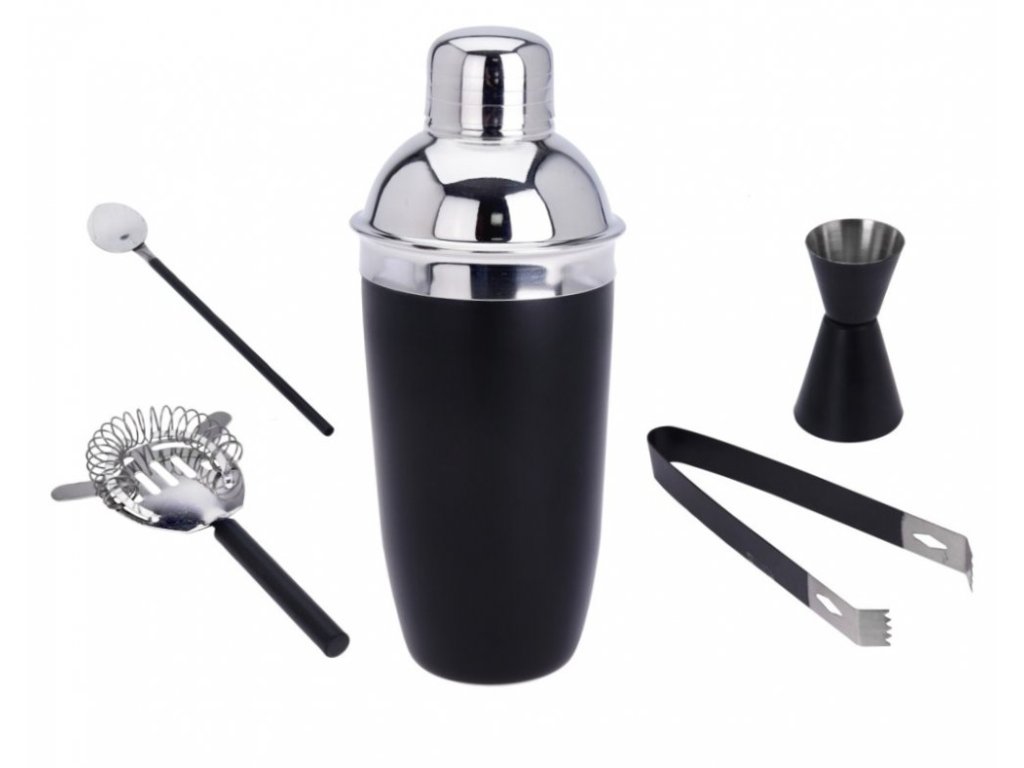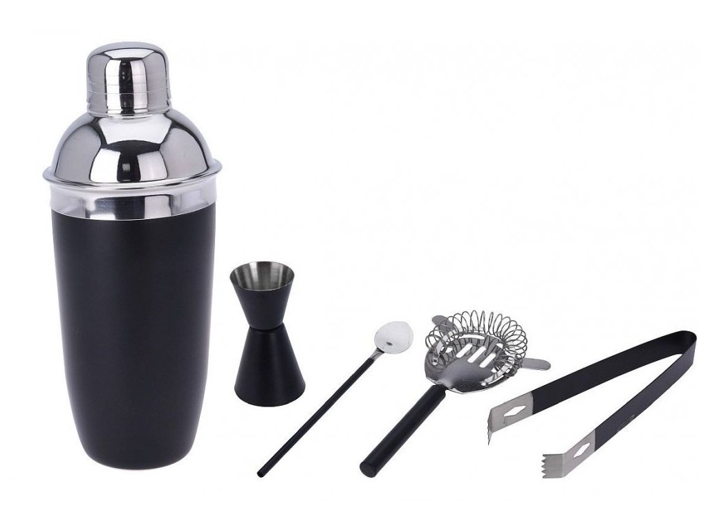 - kompletní barmanský set v atraktivním černo/nerezovém provedení- materiál: nerezová ocel- matný černý povrch, nerezové vnitřní části- kvalitní provedení, dlouhá životnost- vhodné do myčky nádobí, pro zachování dlouhotrvajícího dokonalého vzhledu se však doporučuje ruční mytí- kompletní sada 5 ks obsahuje:- 1x shaker na koktejly s víčkem: objem 0.5 l / výška 20.5 cm- 1x sítko pro cezení přímo ze shakeru - 1x míchací lžíce 20 cm- 1x oboustranná odměrka 9 x 5 cm- 1x kleště na led či ovoce 12 cmDoplňkové parametry