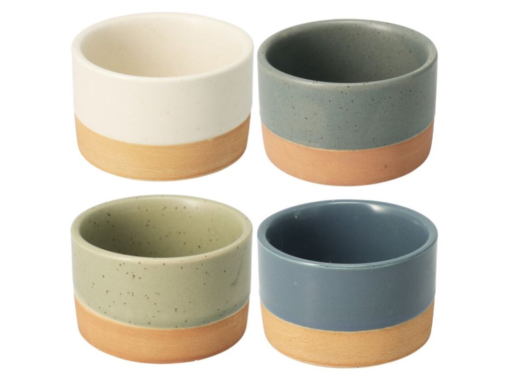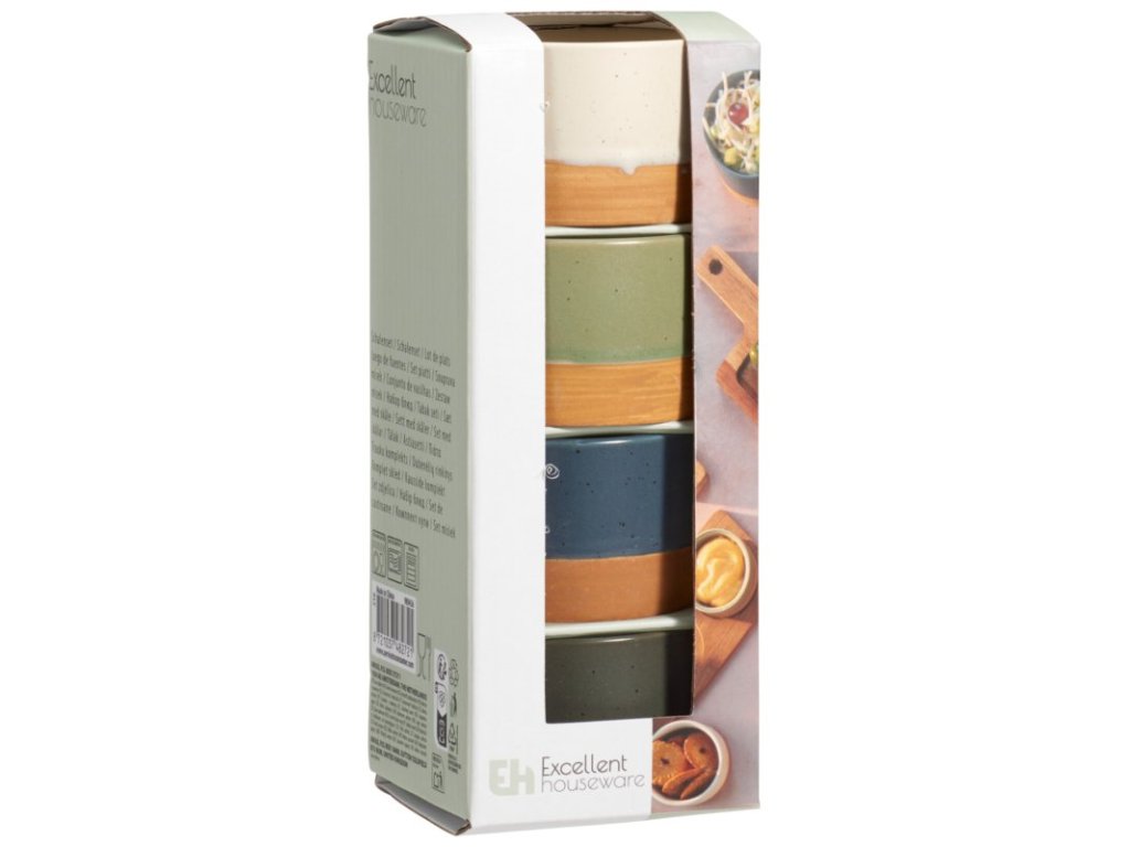 Vneste do stolování špetku stylu s touto sadou čtyř kameninových misek v jemně laděných barvách. Ideální na omáčky, dipy, oříšky nebo malé dezerty.
