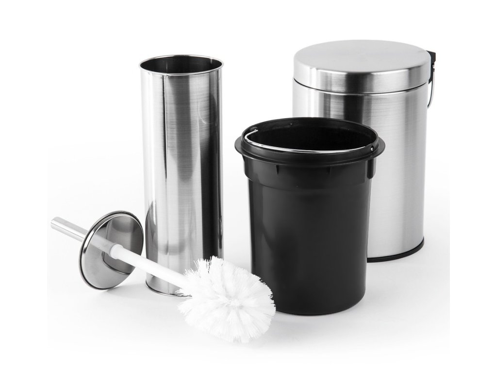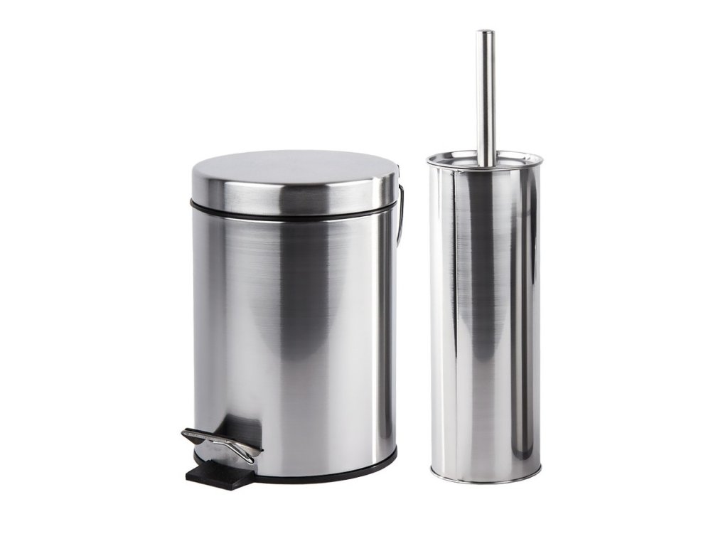 Elegantní a praktická sada pro vaši koupelnu. Obsahuje pedálový odpadkový koš a WC štětku s držákem, oba vyrobené z kartáčované nerezové oceli. Moderní design se hodí do každého interiéru a zajišťuje dlouhou životnost.