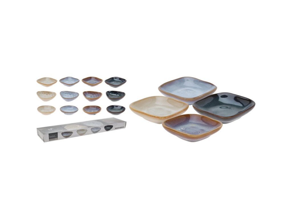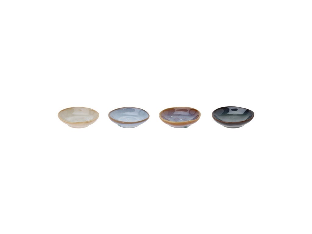 Moderní a barevná sada kameninových misek, ideální pro servírování snacků, pochutin nebo dipů. Každá miska je jedinečná díky reaktivní glazuře v trendy barvách.