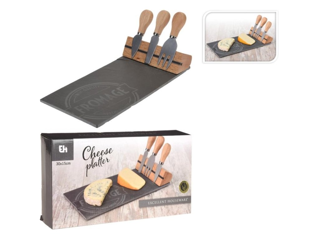 EXCELLENT Servírovací prkénko na sýr břidlice sada 4 ks KO-210000170