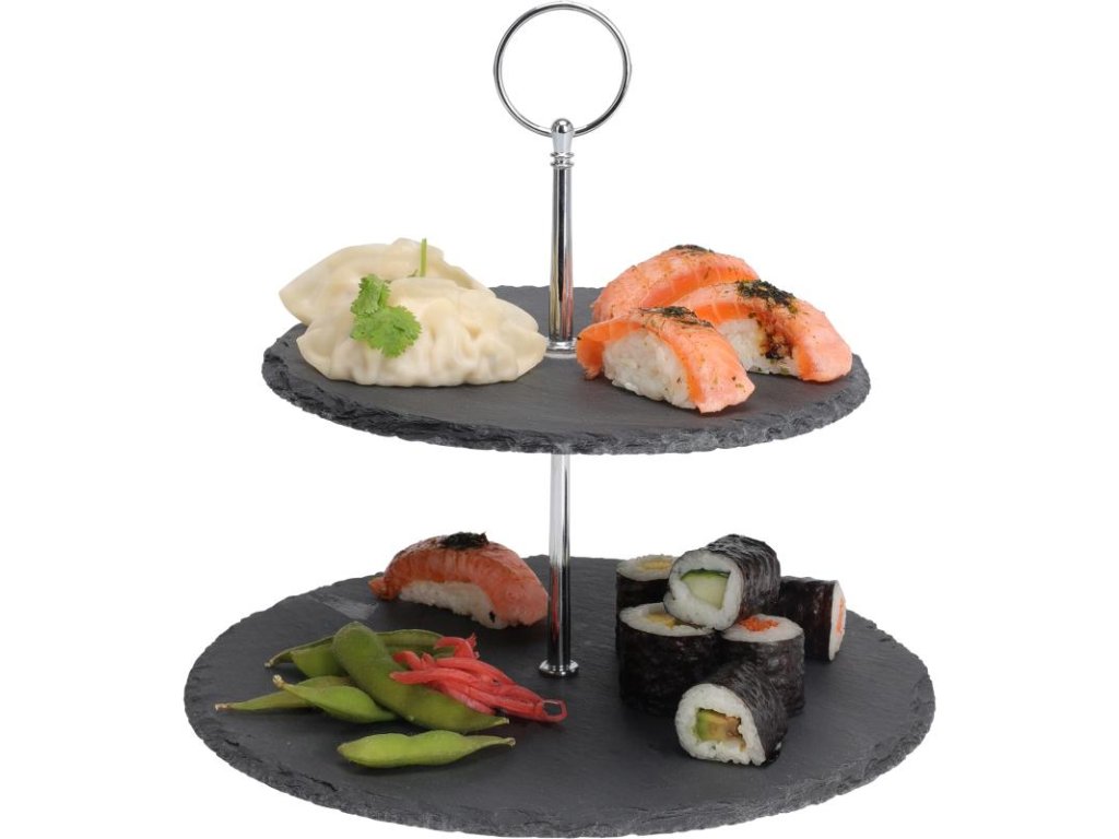 Servírovací stojan na jídlo 2 patra – břidlicový s chromovanou úchytkou