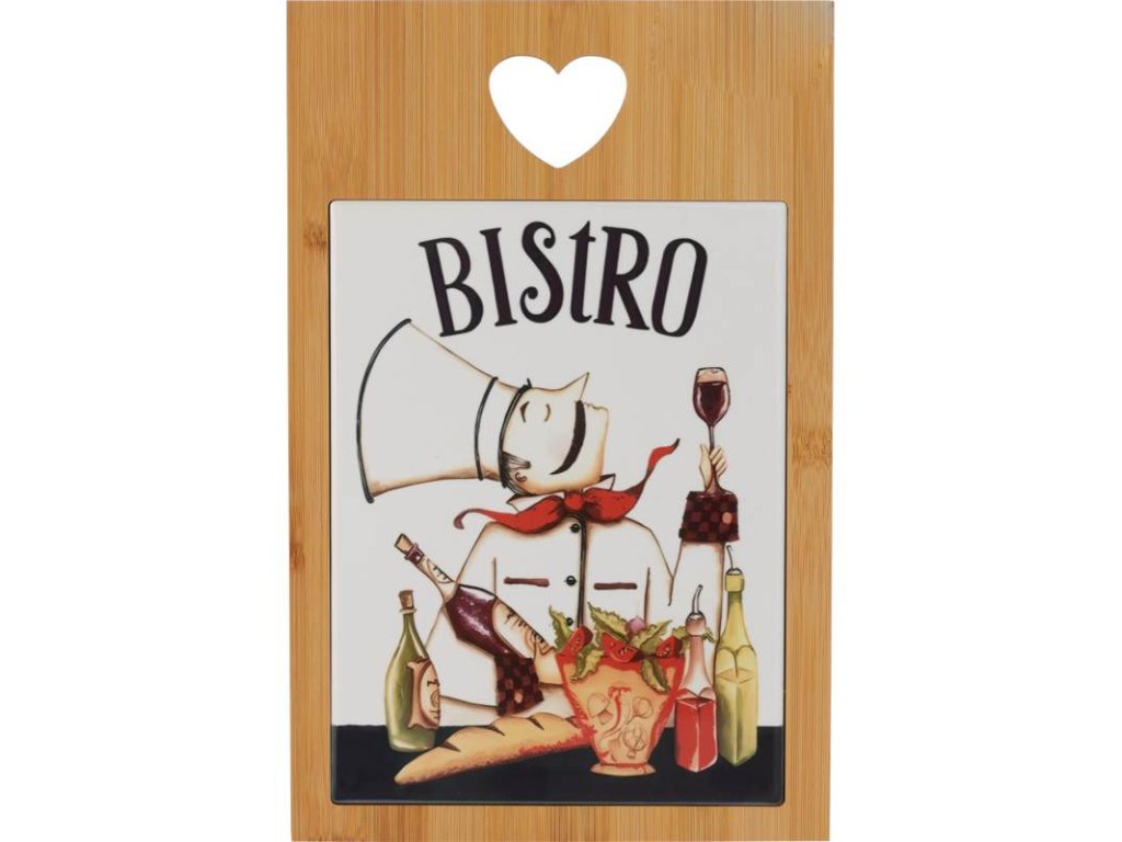 Stylové servírovací prkénko z bambusového dřeva s dekorativní keramickou dlaždicí z dolomitu, text BISTRO, je ideální pro servírování sýrů, uzenin, pečiva nebo tapas. Elegantní kombinace přírodního materiálu a keramiky přináší do každého stolování originalitu a šmrnc.