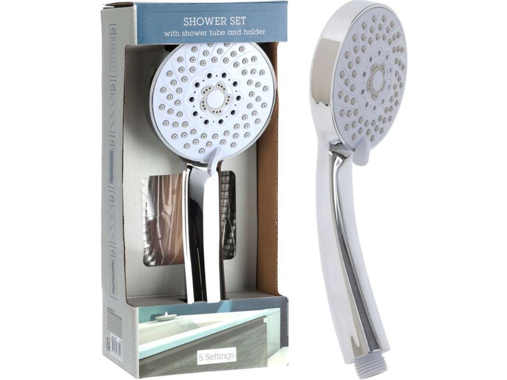 - kompletní set sprchové hlavice i hadice- sprcha disponuje 5 různými funkcemi, které můžete v průběhu sprchování měnit otáčením hlavice- dlouhá ohebná hadice z nerezové oceli- univerzální upevňovací systém, je vhodná ke všem standardním hadicím a bateriím- chromovaný povrch nenáročný na údržbu- díky gumovým kanálkům se na povrchu neudržuje vodní kámen- sada obsahuje:- sprchová hlavice (průměr 9,5 cm)- sprchová hadice 150 cmDoplňkové parametry