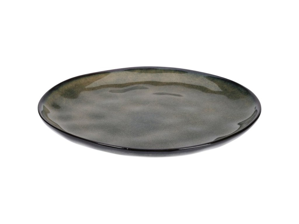 Kvalitní talíř z kameniny s krásnou modro-hnědou glazurou, která dodává každý kus jedinečný vzhled.