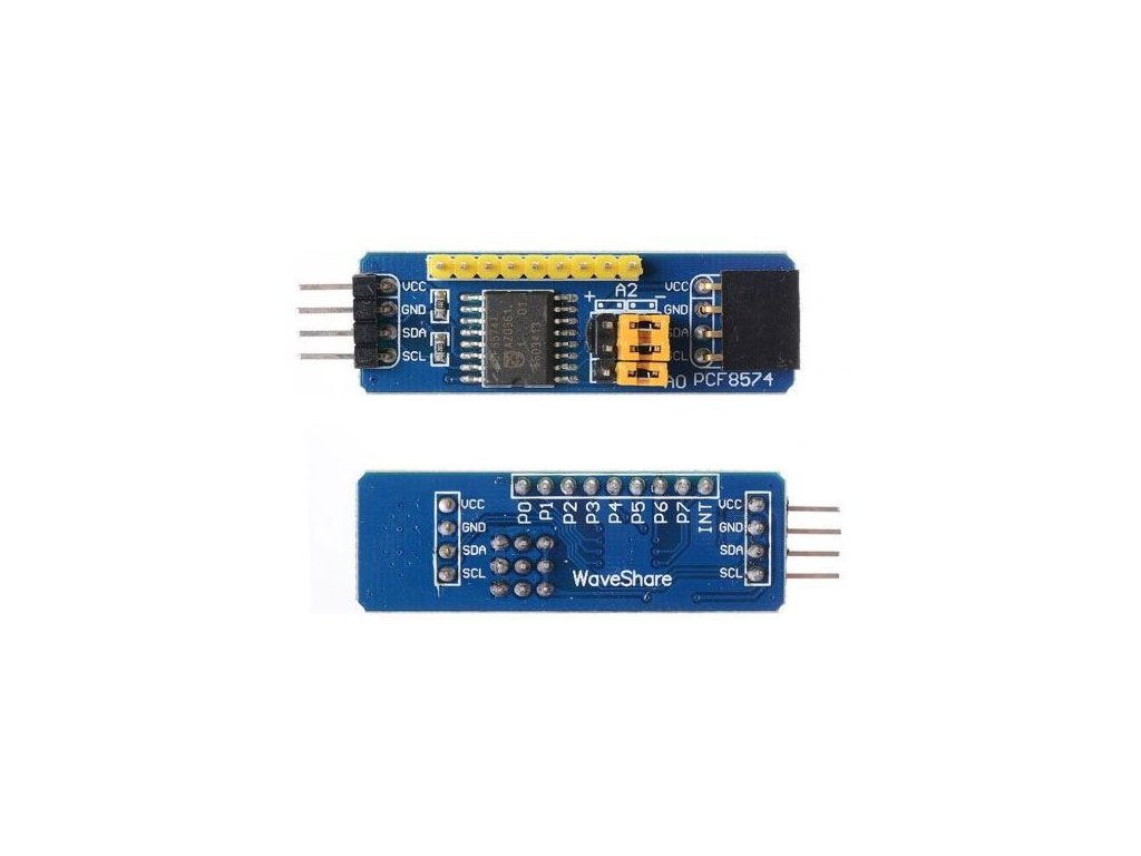 A zde možnost rozšíření nekončí, protože díky třem přepínačům adresy pro obvod PCF můžeme za sebe zapojit až osm expandérů a tím připojit přes dva I2C piny až 64 I/O pinů.