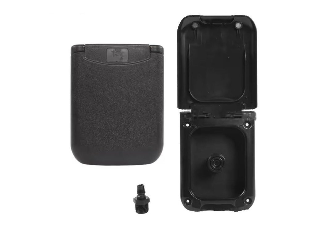 Externí dvířka s přípojkou sprchy - černé Dvířka pro připojení sprchy nebo hadice s automatickým uzavíracím ventilem při vytažení koncovky. Připojovací závit 1/2”, montážní otvor 110x90mm, zástavná hloubka 75mmDoplňkové parametry