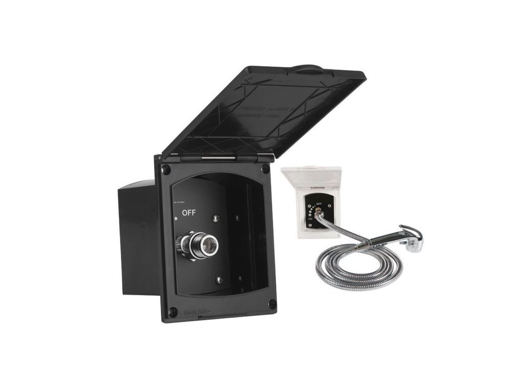 Externí dvířka se sprchou na našrobování a ovládáním - černá Dvířka pro montáž na stěnu karavanu či obytného vozu, včetně ovládacího ventilu, 140cm hadice a sprchové hlavice s ovládáním.Vstup i výstup 1/2 palce (coulu)